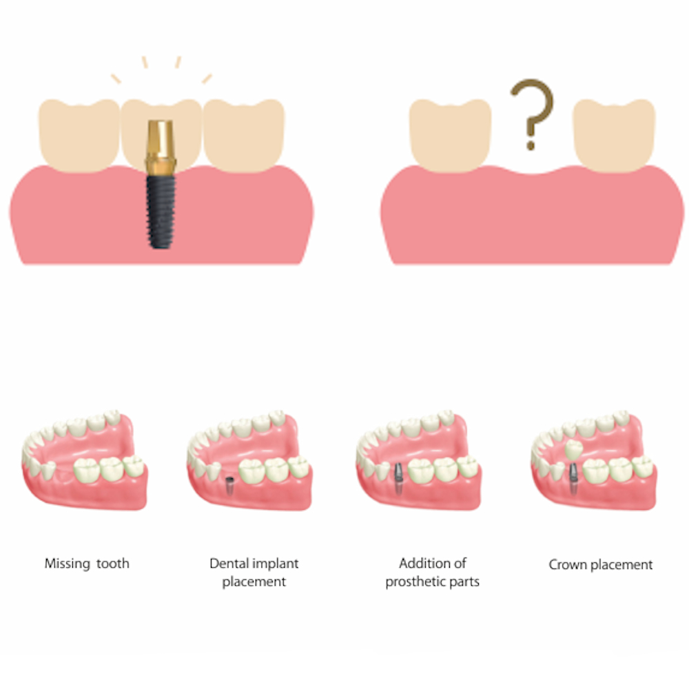What is a dental implant? Dental implants are titanium roots placed in the jawbone to replace natural teeth. They provide solid support for prosthetic teeth and ensure natural aesthetics and comfort.