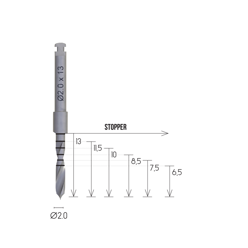 NTA Straight Twist Drills Ø2.0 are designed for the initial osteotomy preparation with depth-marked stopper control, providing precise and efficient drilling for both bone-level and tissue-level implant protocols. Multiple drilling lengths support diverse anatomical requirements while ensuring stability, accuracy and predictable implant site preparation.